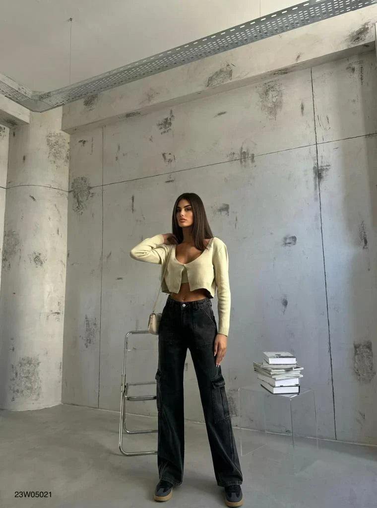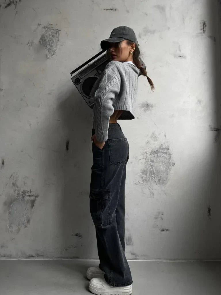 Upgrade your streetwear with the Felda cargo jeans. Thanks to the low-rise design and relaxed fit, these jeans offer the perfect balance between comfort and style. The striking cargo pockets and contrasting stitching provide a rugged, modern look that effortlessly aligns with the urban lifestyle.